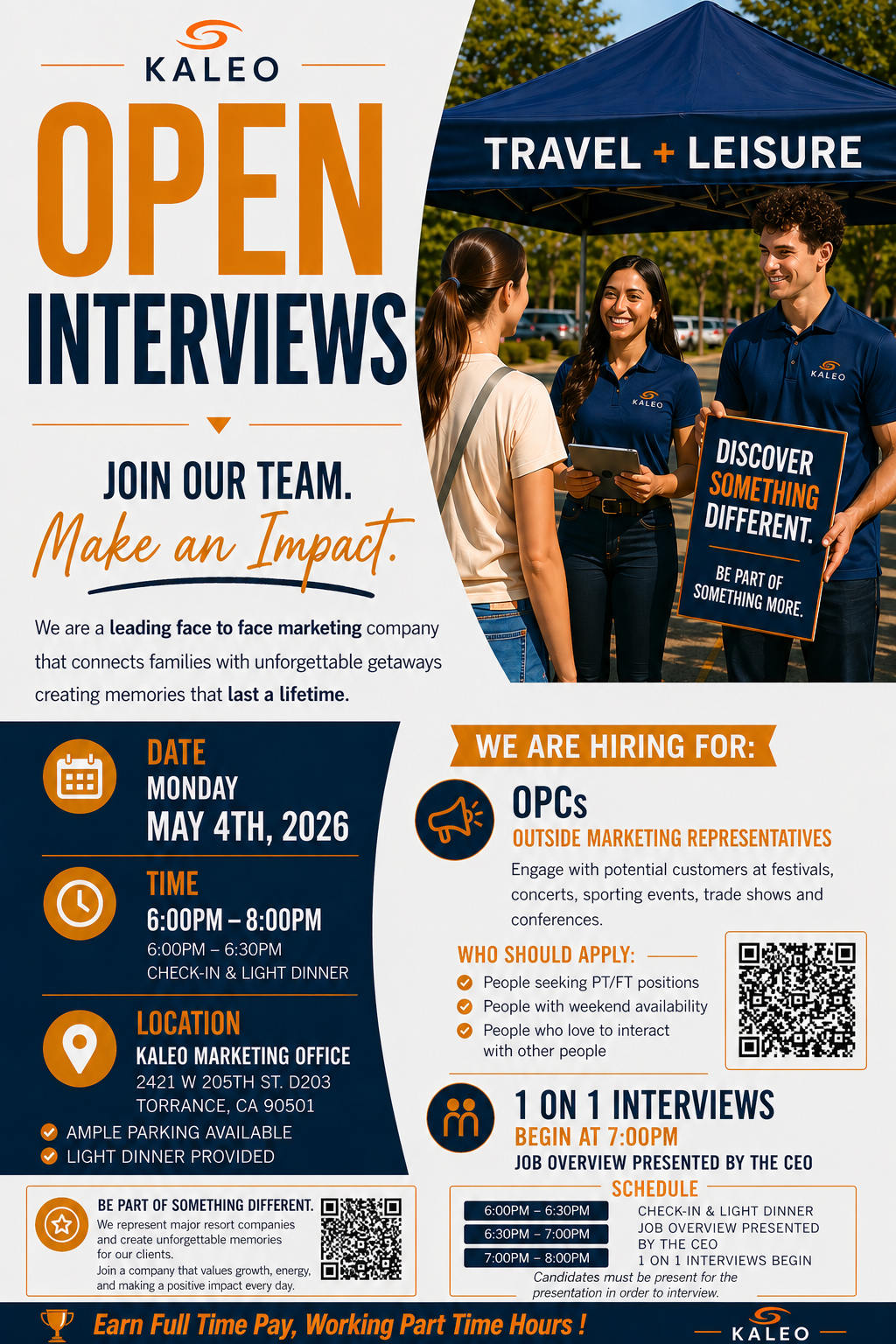 Kaleo Marketing is the premier marketing firm for the vacation ownership industry in the Southwest, recently expanded to the Northeast. Through our community marketing program, we connect with individuals at various special events and venues to educate them on the benefits of timeshare and generate buzz for our clients. Some of the events we participate in are trade shows, fairs, sporting events, expos, movie theaters, and street festivals. Our participation in local charity runs provides support to worthy causes throughout the area.
